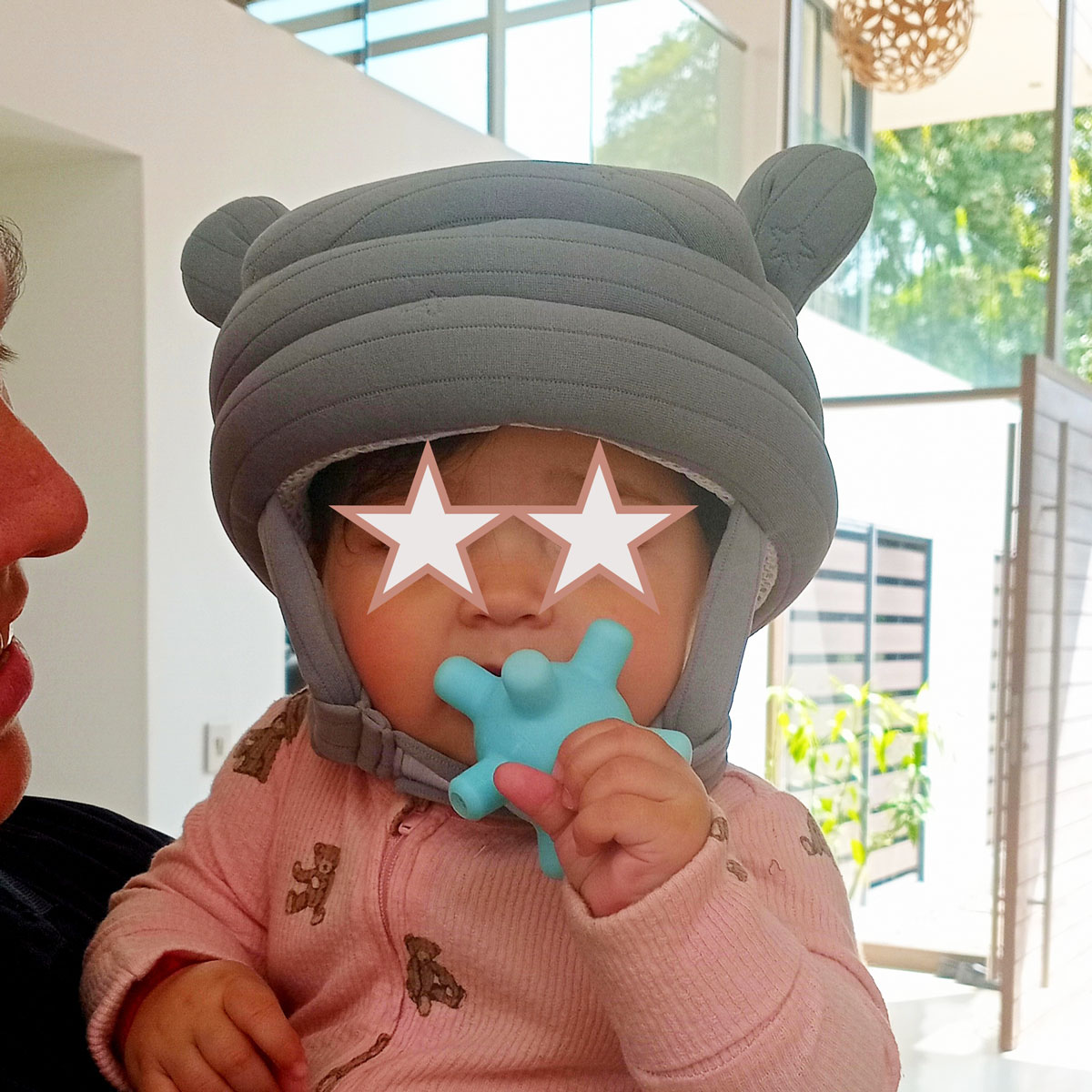 The next step would be to gently, with perseverance and praise, place the hat/head helmets/protector on baby/toddler’s head for just a couple of minutes a day, followed by prolonged lengths of time as you see they become more and more comfortable with wearing it.